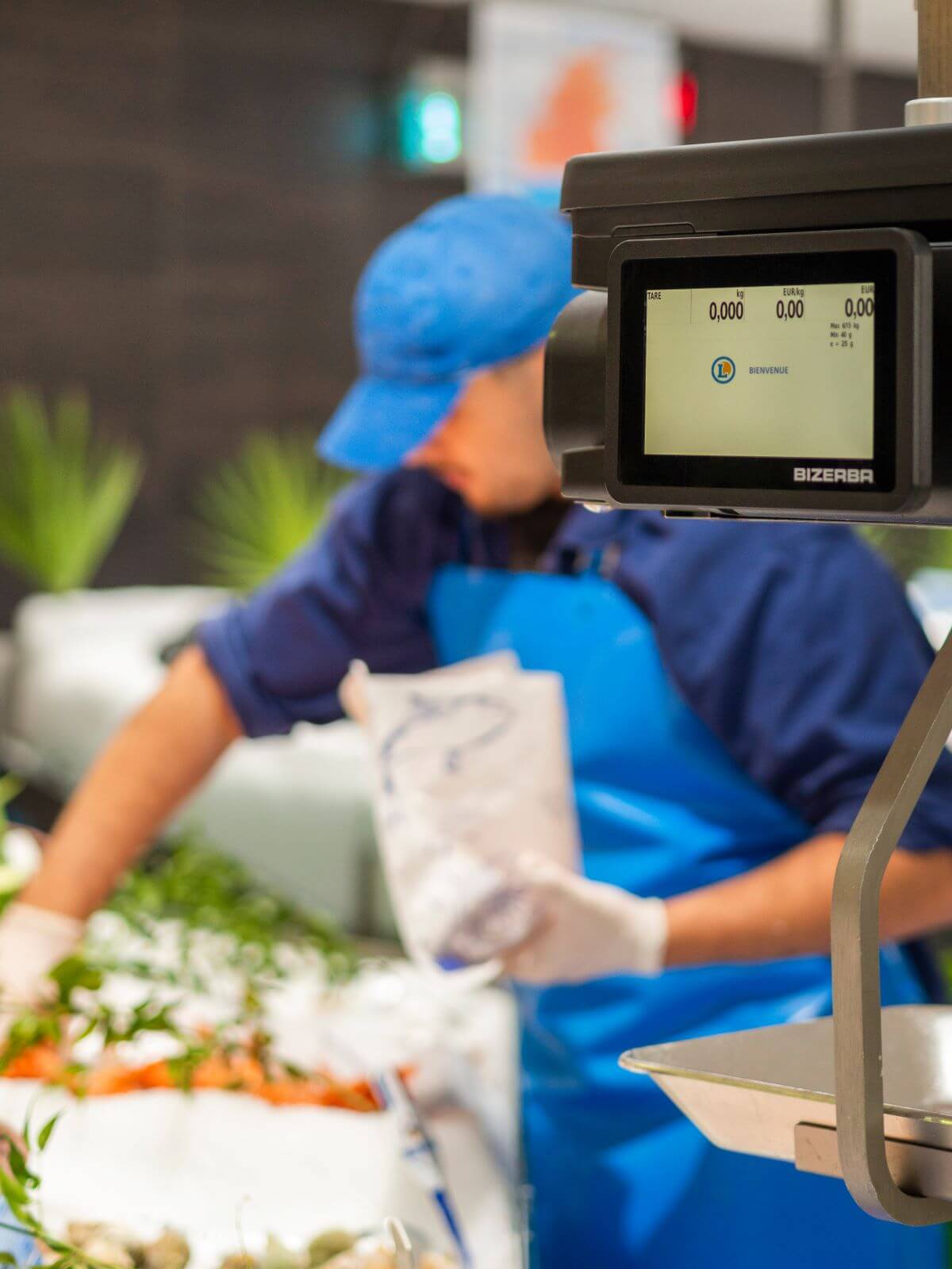 Una de las características distintivas de las tiendas E.Leclerc en Francia son las grandes vitrinas de pescado con una amplia gama de pescado y marisco fresco. Esto resulta muy atractivo para los amantes del pescado y es una oferta rentable para los minoristas, siempre que el equipo permita procesos eficientes y un control centralizado en todos los departamentos. Bizerba ofrece balanzas conectadas, precisas y duraderas para todos los sectores minoristas que se pueden gestionar desde la trastienda. Esto es exactamente lo que E.Leclerc necesita para sus tiendas de pescado.