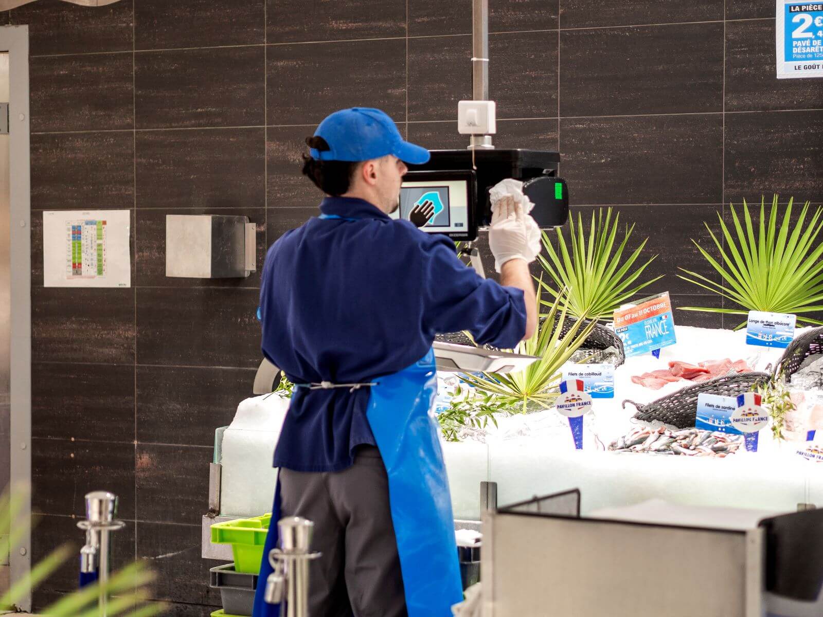 El uso de una sola marca de básculas para todos los mostradores de alimentos frescos en E.Leclerc, Trélissac, ofrece muchas ventajas en términos de eficiencia y coherencia. Al conectar las básculas en red, las actualizaciones, ya sean de precios, etiquetas de productos o promociones, se sincronizan inmediatamente entre todas las estaciones. Esta coherencia simplifica enormemente la gestión diaria y reduce el riesgo de discrepancias asociadas a las reducciones de precios o a los expositores de los distintos departamentos.